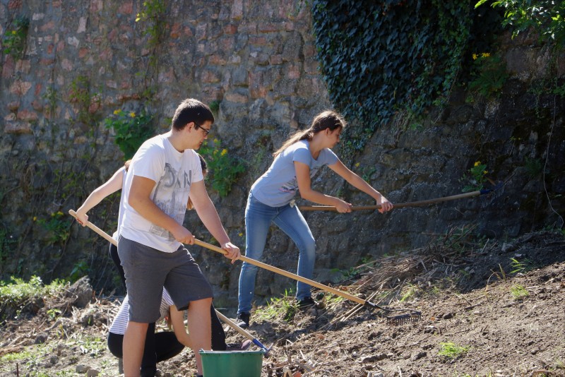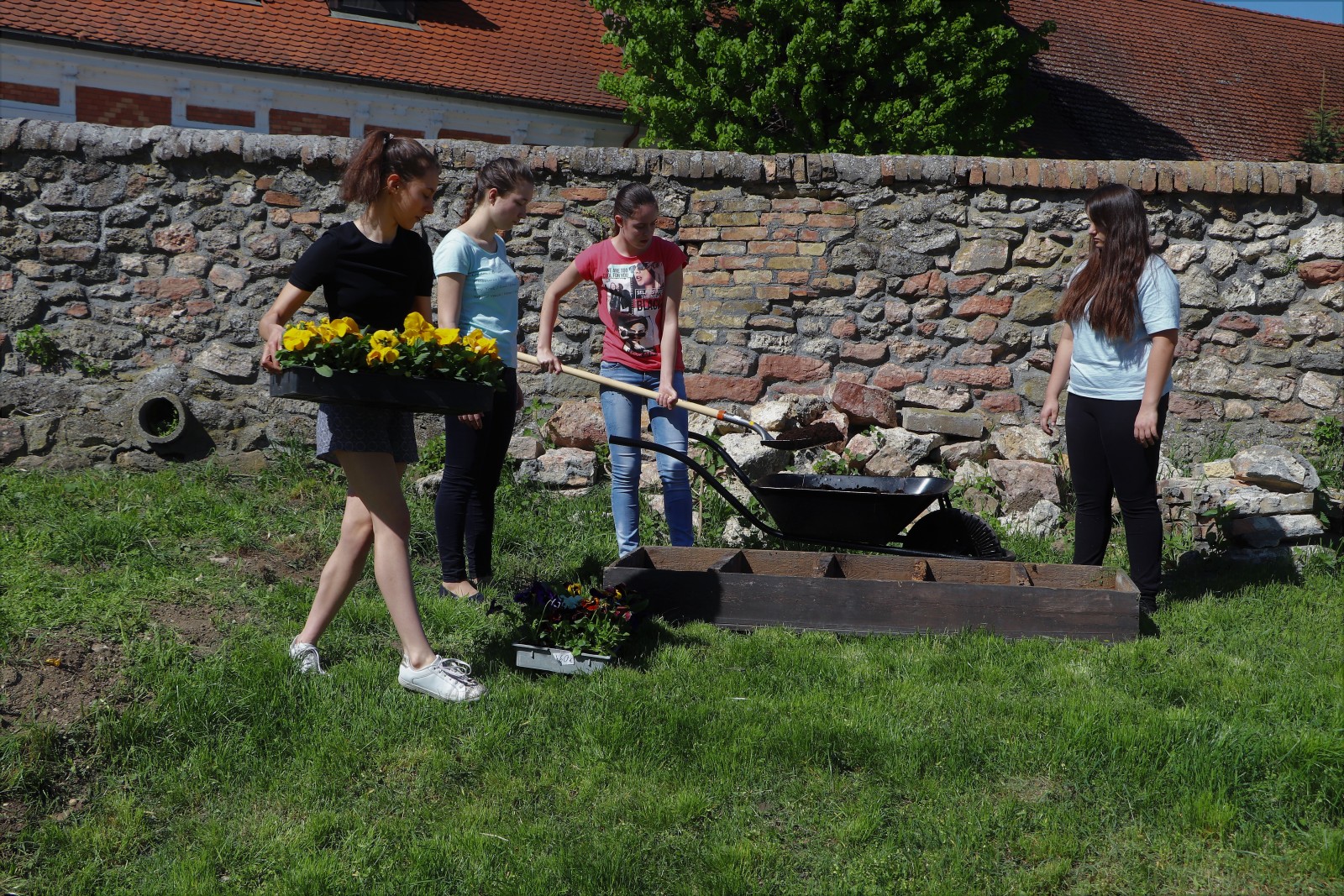 A diákok tereprendezéssel, szemétszedéssel, virágültetéssel szépítették a várárok területét, ahol a munka végén egy finom ebédet is kaptak. A délelőtt folyamán a várudvaron is szorgalmas kezek dolgoztak, hiszen ott a Kőkúti Általános Iskola tanulói gondozták a környezetet, és szedték zsákokba az eldobált szemetet.